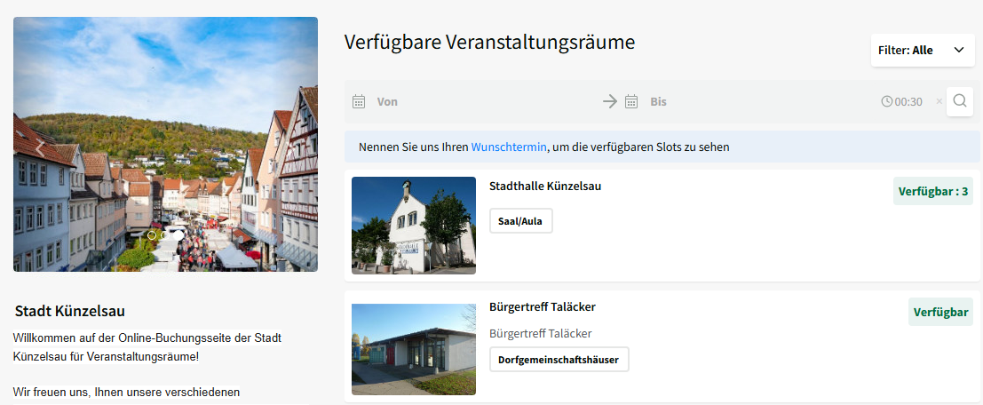 Hinweis: Die Buchungsplattform befindet sich aktuell noch im Aufbau und wird stetig erweitert.