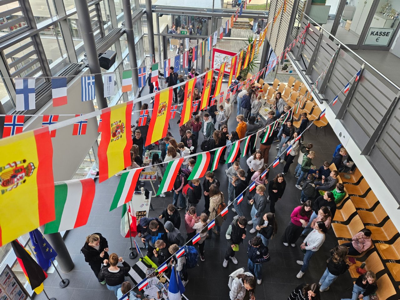 Das aufwendig dekorierte Foyer und die detailreichen Infostände luden zudem dazu ein, die Vielfalt Europas genauer kennenzulernen. Für alle, die die Reise durch die Erasmus-Länder auch kulinarisch erleben wollten, gab es in den Pausen landestypische Spezialitäten zu probieren – darunter Leckereien aus Spanien, Frankreich, Norwegen, Dänemark, Tschechien und Ungarn.