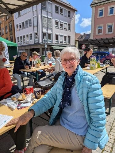 Für Marianne Weber ist es in den vergangenen Jahren zur guten Tradition geworden, der Einladung der Stadtverwaltung zum Fairen Frühstück auf dem unteren Markt in Künzelsau zu folgen. In dieser Zeit müsse man schauen, dass man fair und nachhaltig einkauft, meint die 79-Jährige. Die frühere Mitarbeiterin in der Rathauskantine ist erfreut, dass in diesem Jahr erstmals auch Anbieter aus der Region dabei sind. Bürgermeister Stefan Neumann erklärt, dass faire Frühstück in diesem Jahr mit zwei besonderen Projekten verknüpft ist - mit der 2025 erstmals gestarteten Aktionswoche „Gutes Klima für Hohenlohe“ und der Verleihung der Auszeichnung zur Fairtrade-Stadt vor zehn Jahren.