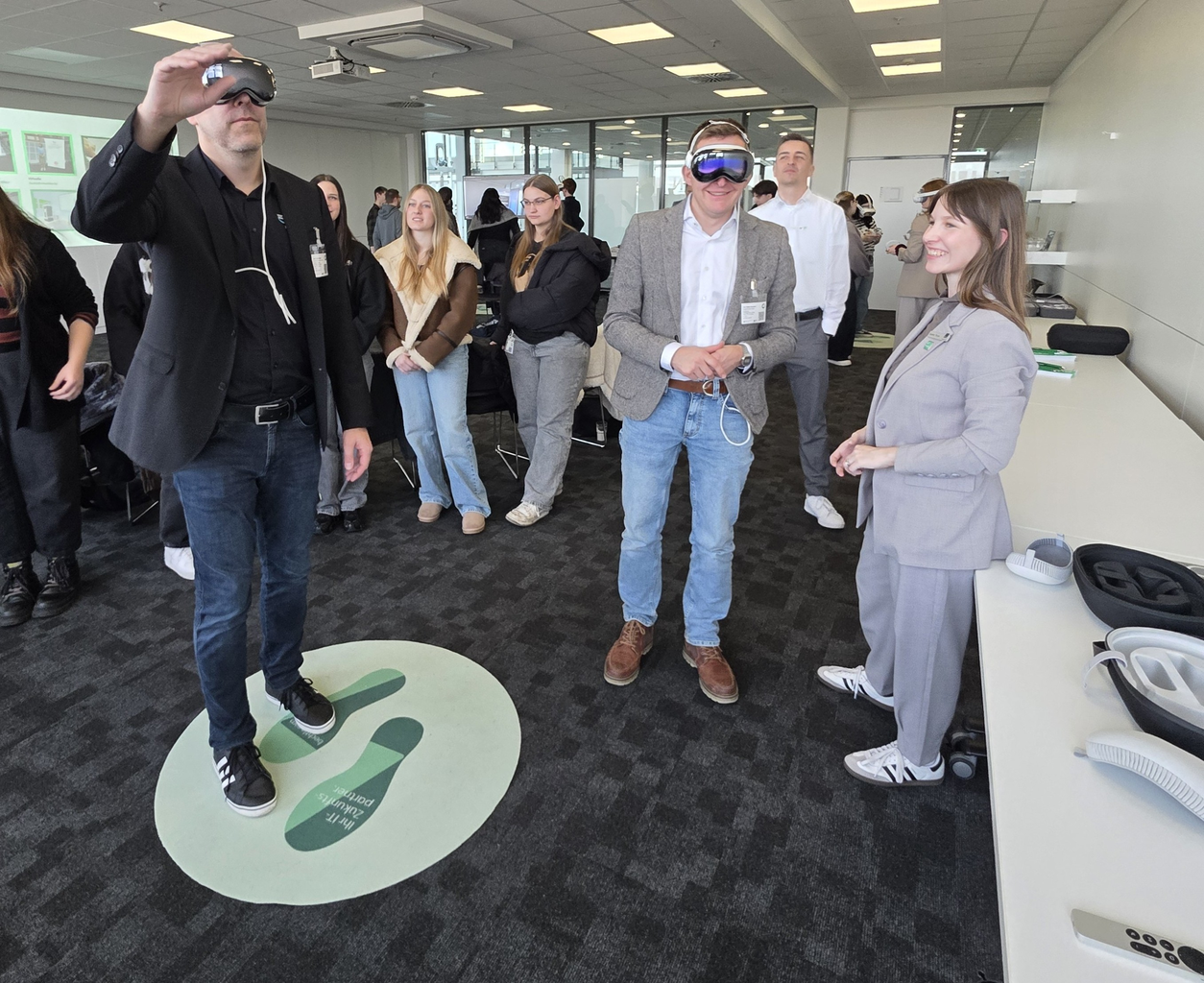 Spannend für die Auszubildenden war dabei der aktive Einsatz modernster VR-Brillen verschiedener Hersteller, mit denen sie direkt in virtuelle Verwaltungs- und Stadtumgebungen eintauchen konnten.