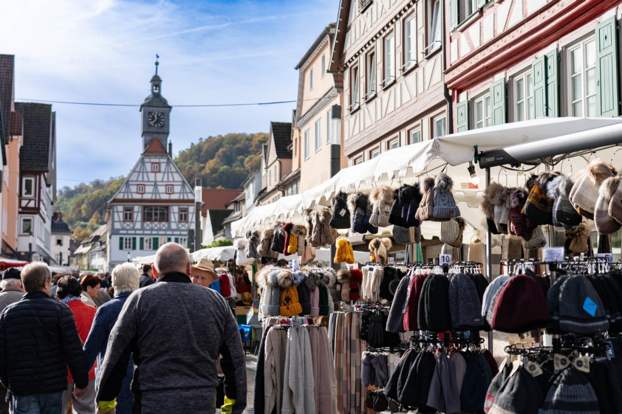 Die Hauptstraße ist am Dienstag, 28. Oktober 2025, wegen des Simon-Judä-Krämermarktes gesperrt, ebenso die Stuttgarter Straße ab der Alleekreuzung und die Komburgstraße. In der Stuttgarter Straße bleibt die Zufahrt zur Rathaustiefgarage frei. Auch die Komburgstraße ist für Anlieger aus Richtung Morsbach weiterhin befahrbar. In der Stettenstraße und der Keltergasse besteht absolutes Halteverbot. Die Stadtverwaltung bittet dringend darum, dieses einzuhalten, um Behinderungen des Durchgangsverkehrs zu vermeiden. Die Bushaltestelle „Bären“ wird in die Austraße verlegt.