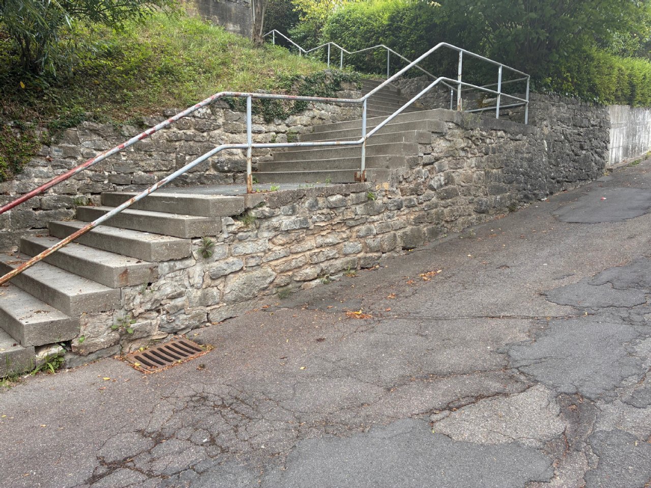 Die Treppenanlage am Kapellenweg in Künzelsau ist ab sofort komplett gesperrt. Grund dafür sind unerwartet große Schäden am Abwasserkanal unter der Treppe.