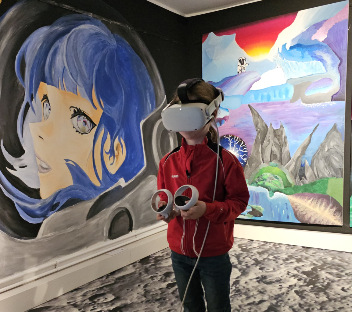 Darüber hinaus werden in der Ausstellung Originalexponate von ESA-Astronaut Dr. Alexander Gerst und seinen beiden Weltraum-Missionen präsentiert. Sehenswert sind außerdem die künstlerischen Arbeiten der Schülerinnen und Schüler der Georg-Wagner-Schule und des Ganerben-Gymnasiums. Sie haben sich mit dem Inneren der ISS, Weltbildern vergangener Zeiten und fabelhaften Aliens auseinandergesetzt. Mittels QR-Codes können die Besuchenden Quizfragen lösen und mehr Interessantes zur Space ART erfahren.