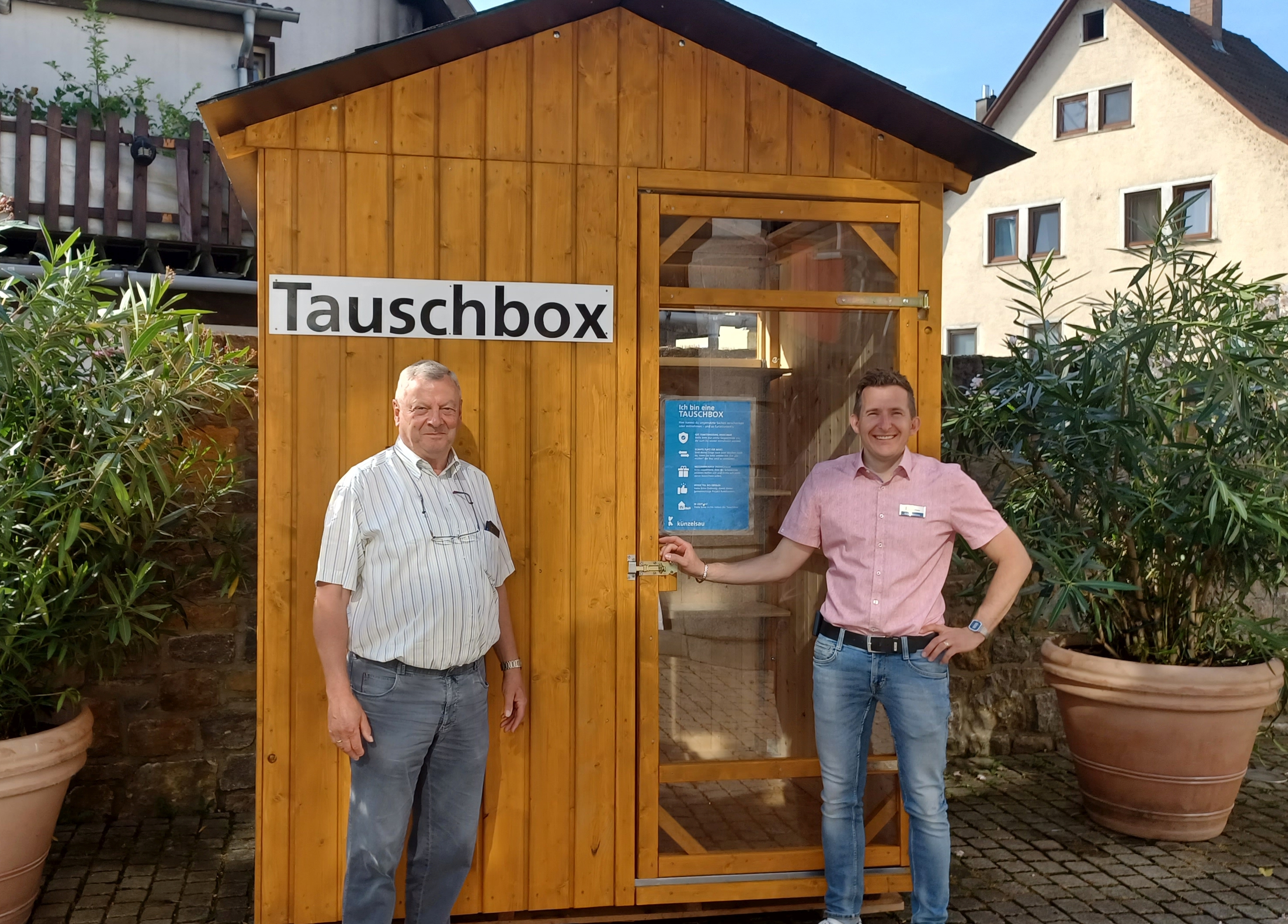Robert Beck hat die Tauschbox gebaut und gemeinsam mit Bürgermeister Stefan Neumann Ende Mai zum Befüllen, Tauschen und einfach mal reinschauen freigegeben.