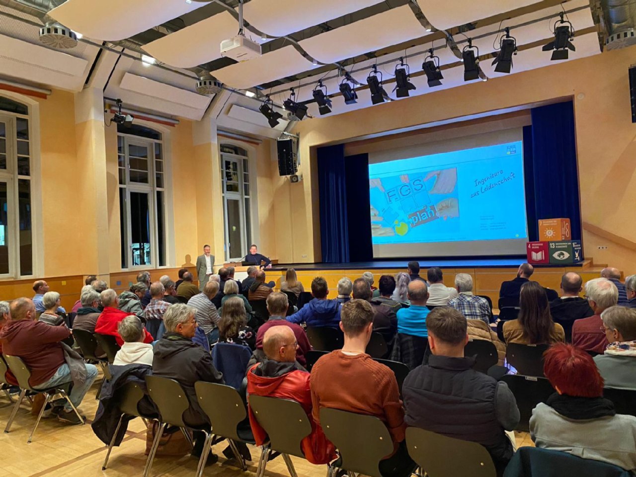 Im großen Saal der Künzelsauer Stadthalle hat Bürgermeister Stefan Neumann gemeinsam mit der Ingenieurgesellschaft für Energie-, Gebäude- und Solartechnik EGS-plan und dem Klimazentrum Hohenlohekreis die rund hundert Besucherinnen und Besucher auf den Abschied von fossilen Energieträgern Heizöl und Gas eingestimmt, die bei der Wärmeerzeugung noch 70 Prozent ausmachen. Thema war die kommunale Wärmeplanung, die seit Anfang 2024 mit dem Wärmeplanungsgesetz für alle Kommunen verpflichtend ist. Die mit der Analyse der Potenziale beauftragte Ingenieurgesellschaft stellte in der Infoveranstaltung erste Ergebnisse vor.