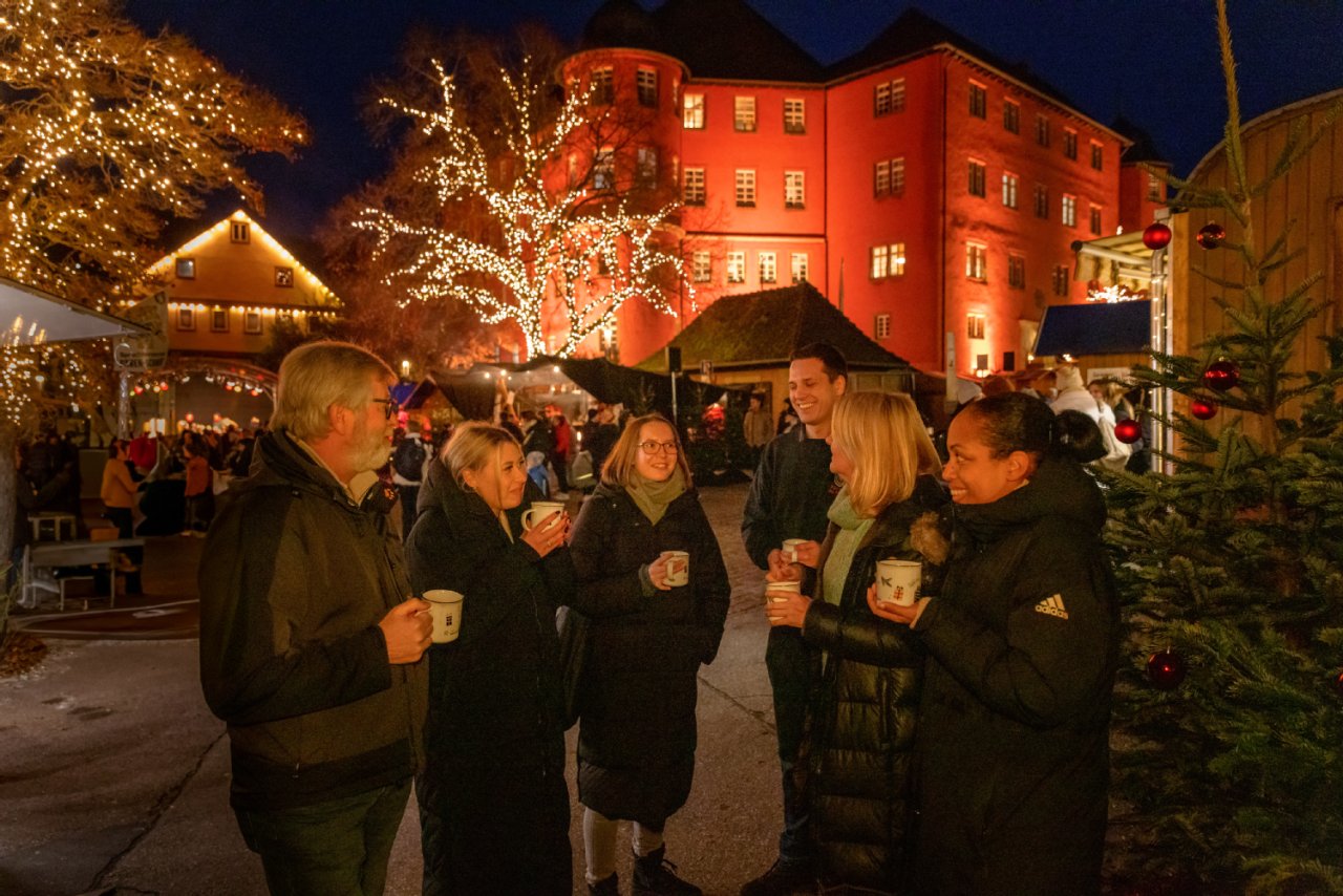 Vom 3. bis 7. Dezember 2025 lädt der Weihnachtsmarkt „Advent am Schloss“ große und kleine Besucher dazu ein, sich auf die schönste Zeit des Jahres einzustimmen. Über 30 liebevoll geschmückte Stände werden an den fünf Tagen von über 40 Gruppen, Schulklassen, Vereinen und Kunsthandwerkern betreut. 20 verschiedene Künstlerinnen und Künstler präsentieren ein attraktives Rahmenprogramm und zaubern echte Weihnachtsstimmung. Für das leibliche Wohl mit leckerem Essen und wärmenden Getränken sorgen Künzelsauer Gastronomen und Vereine. Auf dem stimmungsvoll beleuchteten Vorhof des Schlossgymnasiums findet ein Kunsthandwerkermarkt statt. Dort präsentieren regionale Produzenten und kreative Handwerker ihre liebevoll gefertigten Produkte und Geschenkideen. Der Weihnachtsmarkt hat von Mittwoch bis Freitag von 16 bis 21 Uhr geöffnet, Samstag von 14 bis 21 Uhr und Sonntag von 11 bis 18 Uhr. Die offizielle Eröffnung des Weihnachtsmarktes findet am Mittwoch, 3. Dezember 2025, 18 Uhr durch Bürgermeister Stefan Neumann statt.