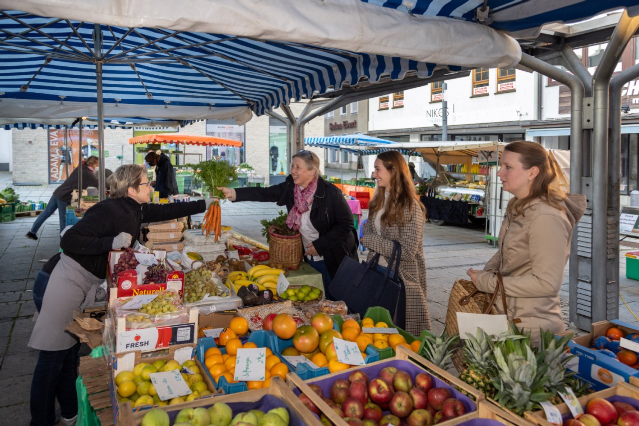 Der Wochenmarkt in Künzelsau bietet zweimal wöchentlich eine vielfältige Auswahl an frischen Produkten: Neben Obst, Gemüse und Blumen erwarten die Besucherinnen und Besucher zahlreiche Spezialitäten aus der Region.