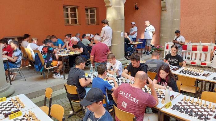 Schach im Schloss ist ein Schnellschach-OpenAir-Turnier, das der Schachclub Künzelsau e.V. seit 2007 veranstaltet. Wir spielen im Innenhof des Künzelsauer Schlosses, der eine wunderschöne Kulisse für das Turnier bietet. Auch Nicht-Teilnehmende sind herzlich eingeladen, das Ambiente zu genießen und sich an unseren Verpflegungsständen zu stärken.