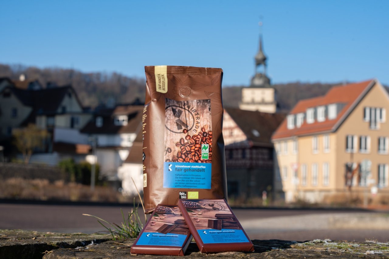 Der „Künzelsauer Stadtkaffee" – ein Bio-Kaffee aus fairem Handel, verpackt in eigens für Künzelsau entworfenen Kaffeetüten, und die Fairtrade-Stadtschokolade schmecken nicht nur super, sondern eignen sich jederzeit als genussvolle Geschenkidee. Die Produkte sind im Bürgerbüro und im Weltladen erhältlich.